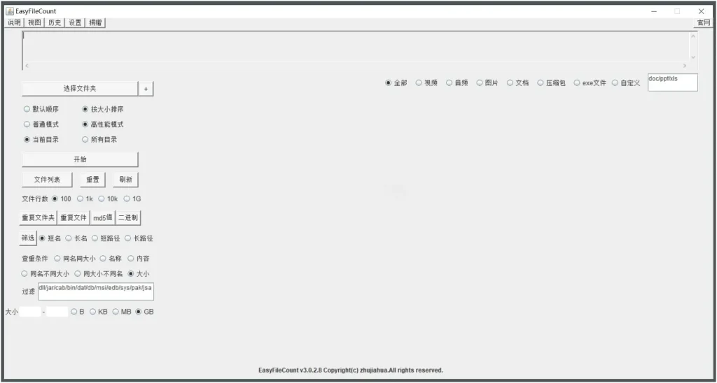 EasyFileCount 是一款免费方便、快捷的文件管理软件,采用Java开发,主打一个清爽简洁、安全无害的使用体验,支持多盘高性能扫描。遍历扫描文件夹的速度还算比较快的,当然所谓的快慢取决于CPU、系统、硬盘种类、文件或文件夹的数量等等,支持win7、win10-11。软件主打清爽简洁,逻辑扫描调整,不输于付费,无功能限制,无登录接口。